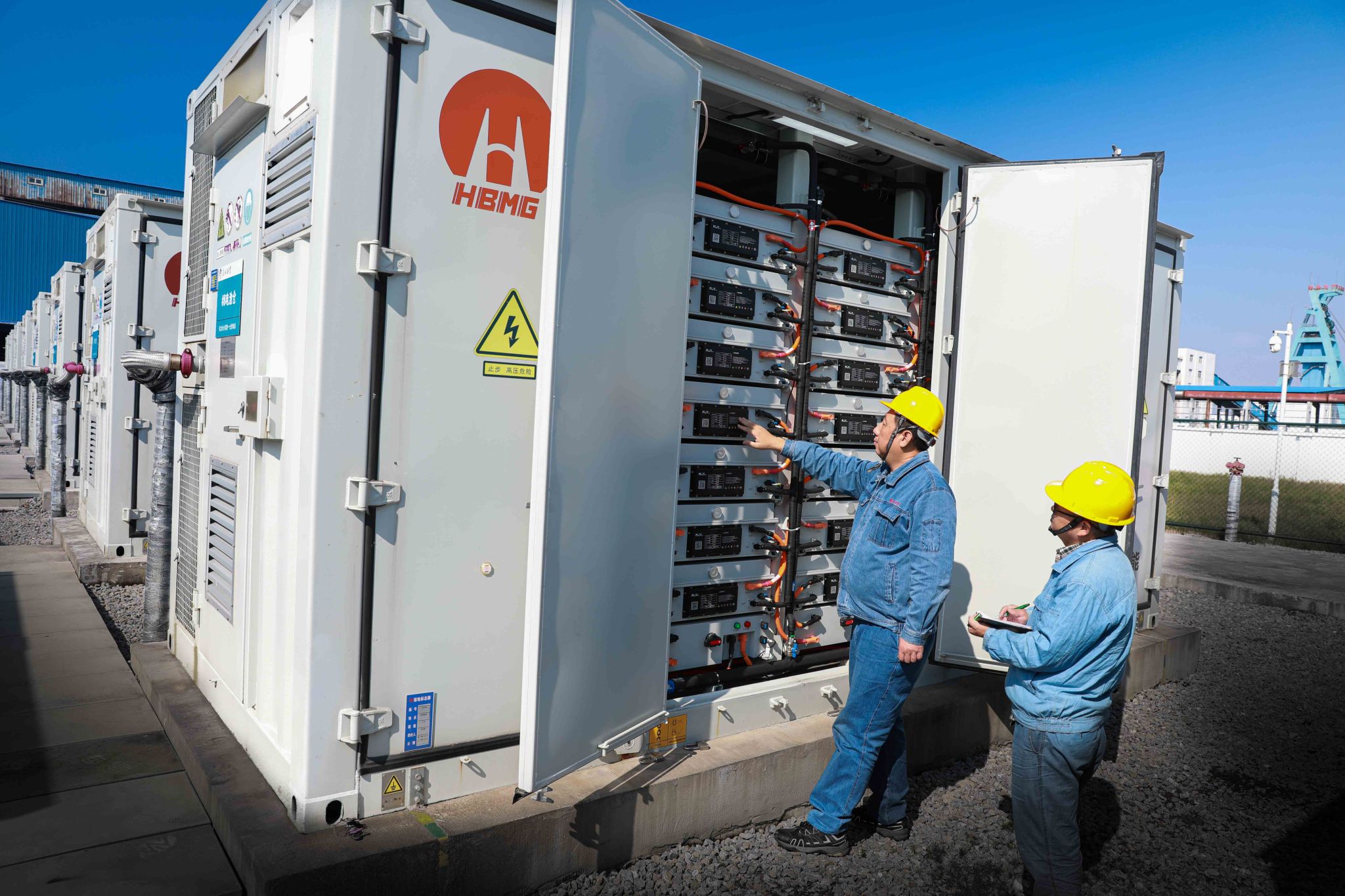10月22日上午,记者走进位于袁店一矿工广内的电力分公司储能电站,只见9座电池仓如整齐列队的卫士,在深秋的蓝天白云下,显得格外醒目。